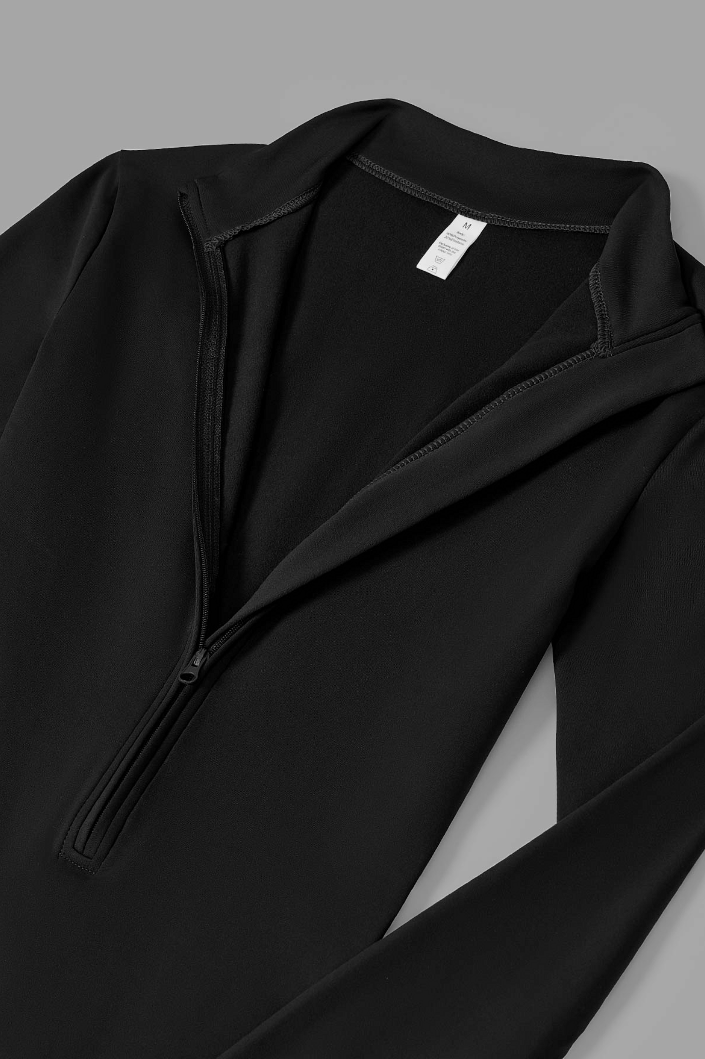 • High-neck zip design