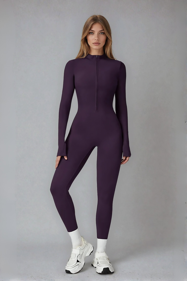 Say hello to the Charlotte Long Sleeve Jumpsuit—your new one-and-done favorite for movement or mellow days. Designed with a sleek high neckline and long sleeves, it delivers a clean, sculpted silhouette while keeping you effortlessly comfortable. With its soft, stretchy fabric and second-skin feel, the jumpsuit moves with you—whether you're heading to a workout or styling it up for a laid-back day out.